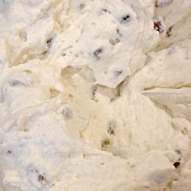 Frozen nougat is a lovely way to end a meal. It is so light, and a half–cup serving is all that’s needed. If the dinner has been a full one, it’s nice to serve something light and cool for dessert. Remember that dessert is the last thing on your guests’ palates. It needs to be memorable, in a good way!
