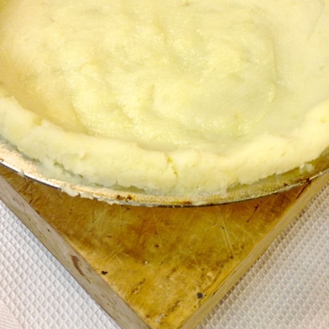 Press the potatoes evenly throughout the dish, building up the top of the sides to a finger-width higher than the pan.