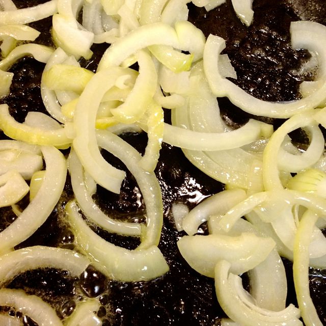 Cut the onion in half root to stem, and then crosscut into ¼” slices.