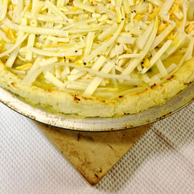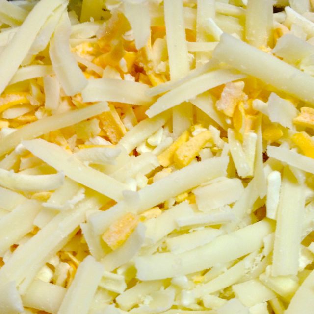 Top with the mixed grated cheeses, in an even layer.