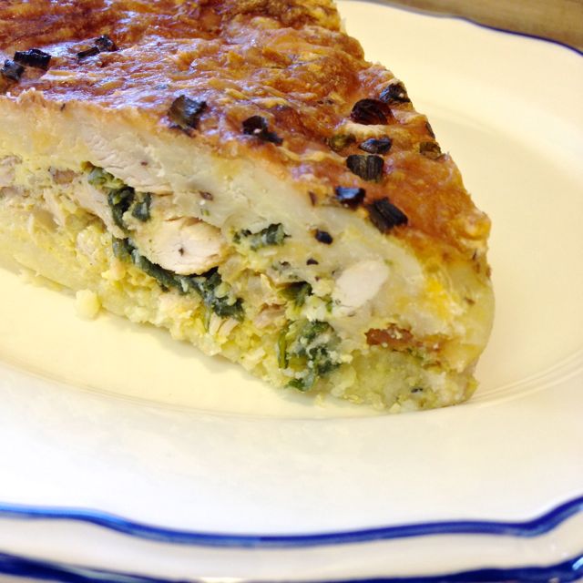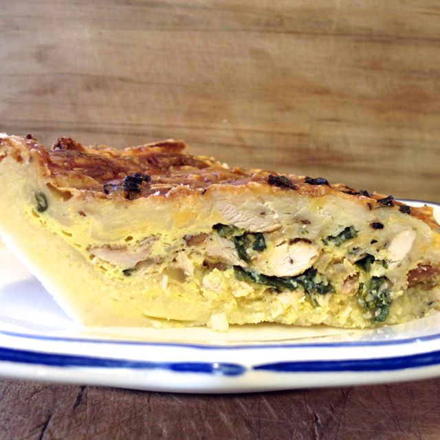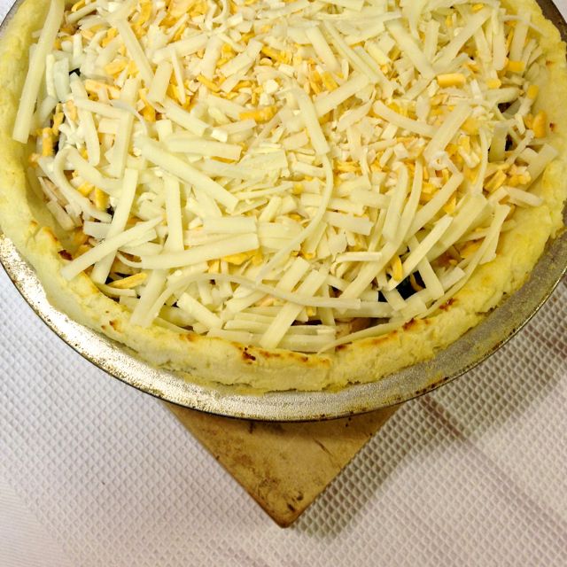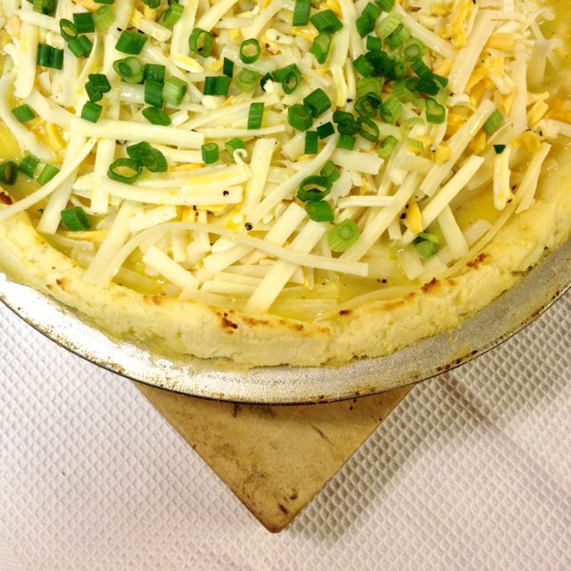 This quiche is an excellent meal. It can easily be converted to a vegetarian version, and is naturally gluten-free. The mashed potatoes that are used for the crust work best if they are a day old. Just make some the day before, if not using leftovers.
