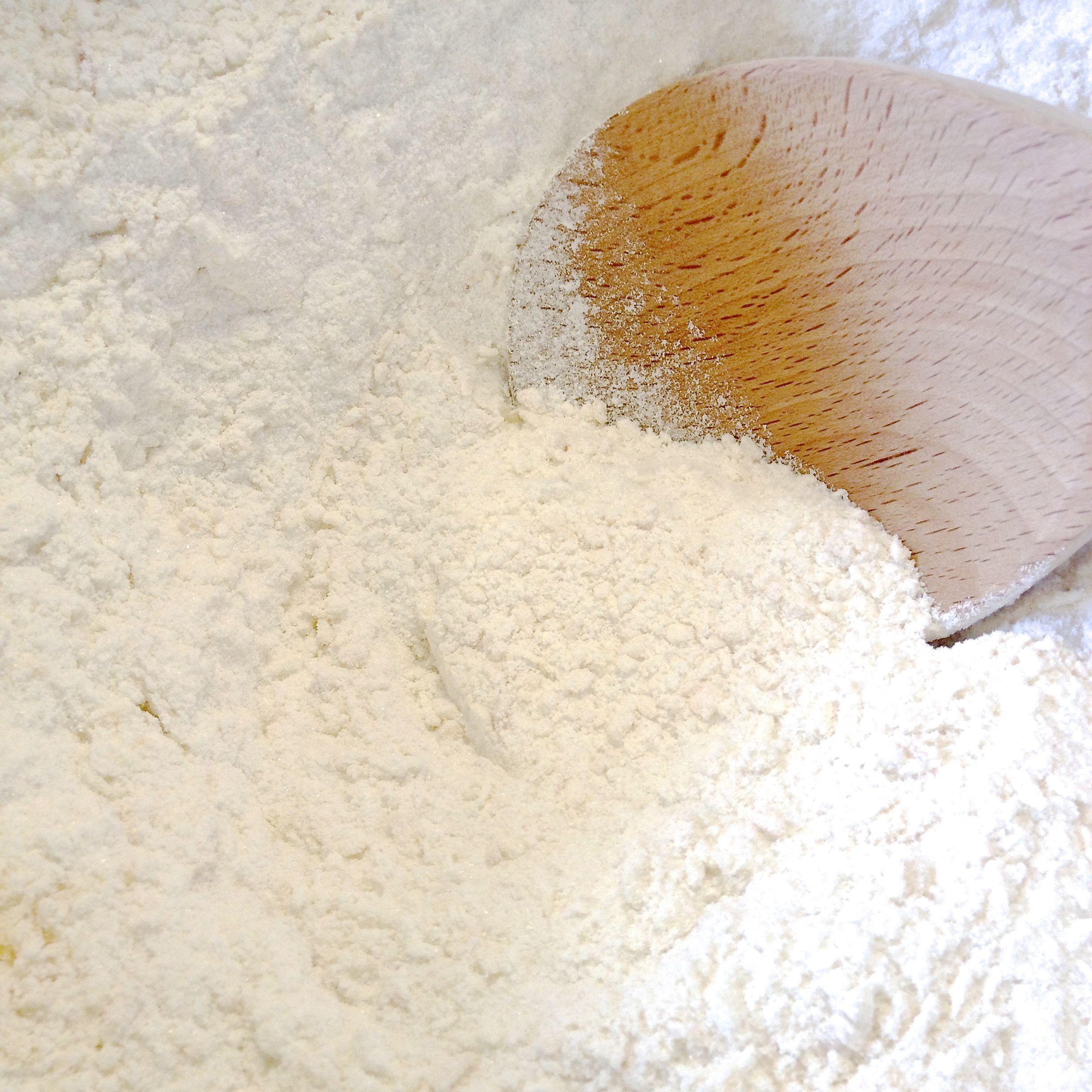 In a large bowl, whisk together the flour, most of the sugar (reserving 2T), baking powder, salt, and the toasted unsweetened coconut.