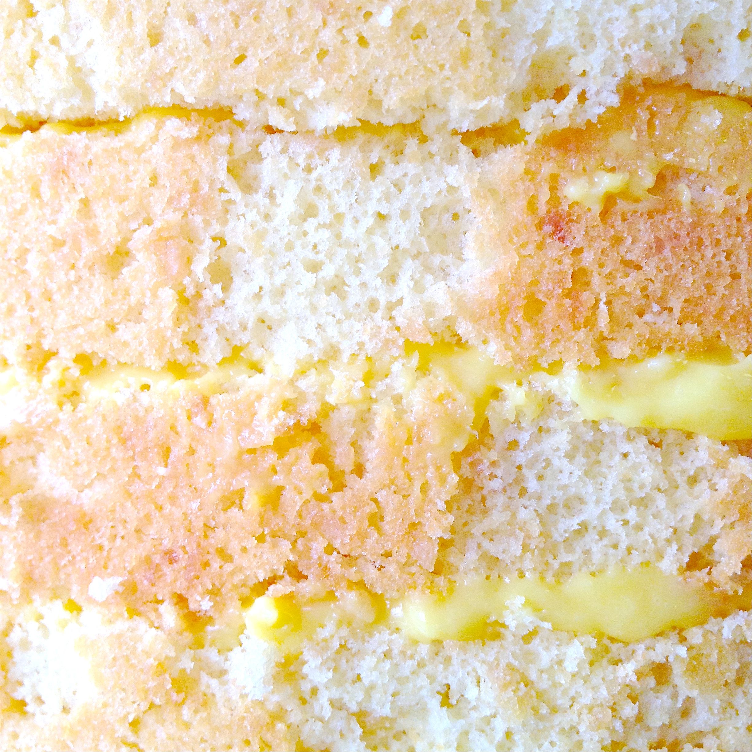 Spread it with about ½ a cup of the lemon curd. Top with the next layer. Spread the next layer with the same amount of lemon curd, and so on until you have the four layers rebuilt with lemon curd in between.