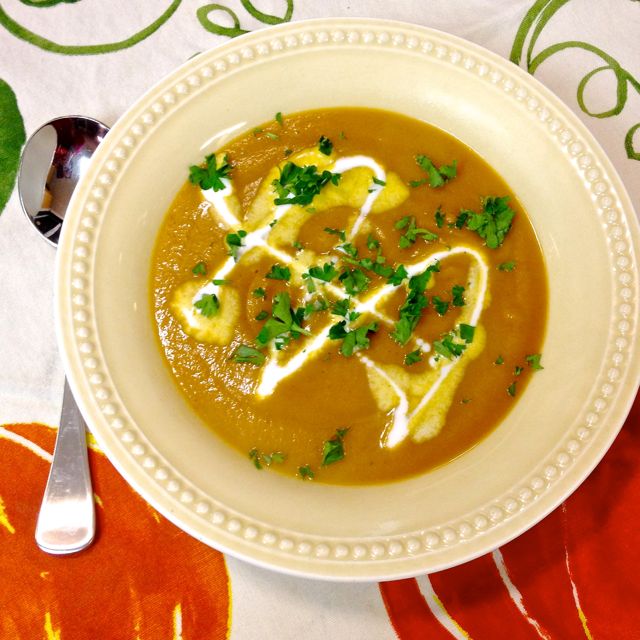 Serve with a drizzle of coconut milk, and a sprinkle of chopped parsley.
