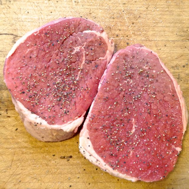 Blot the steaks dry with a piece of paper towel.