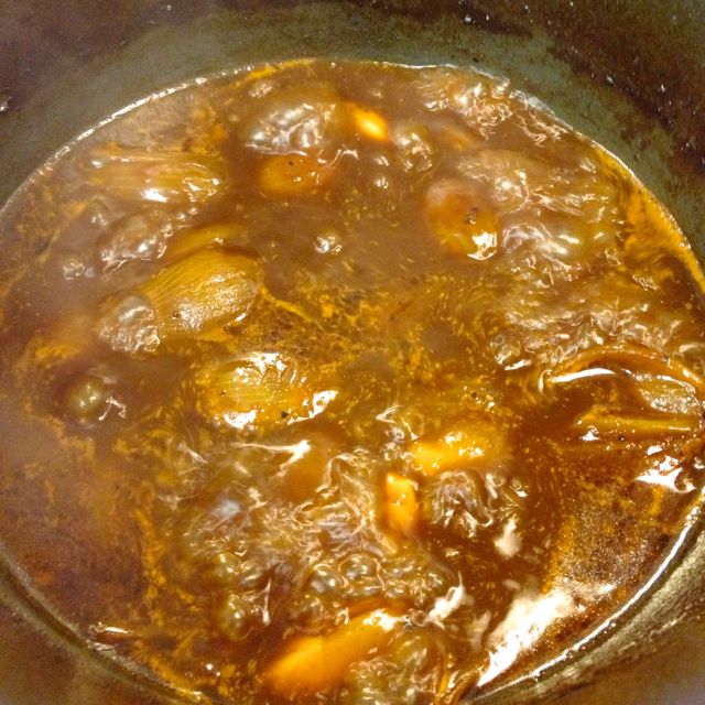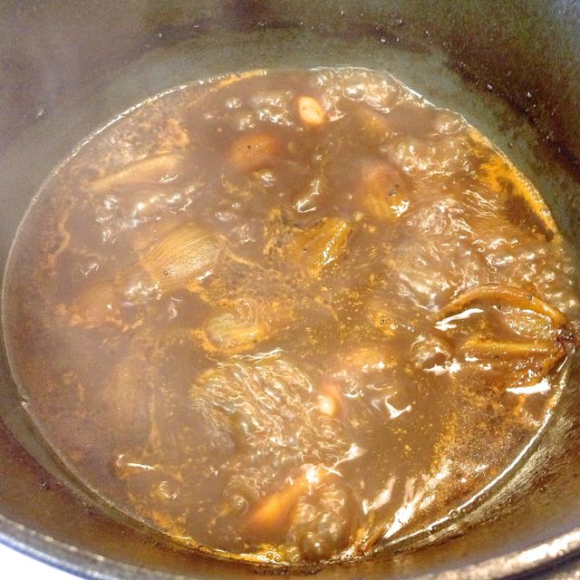 6 shallots; peeled and halved. Leave some of the root intact, so the shallot stays together somewhat while cooking.