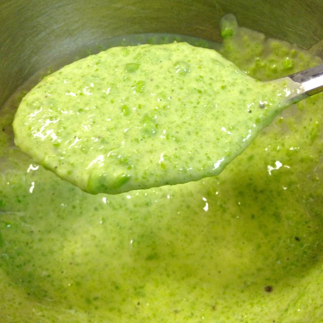 Add in the peas, cooking them at a simmer for 3 minutes.
