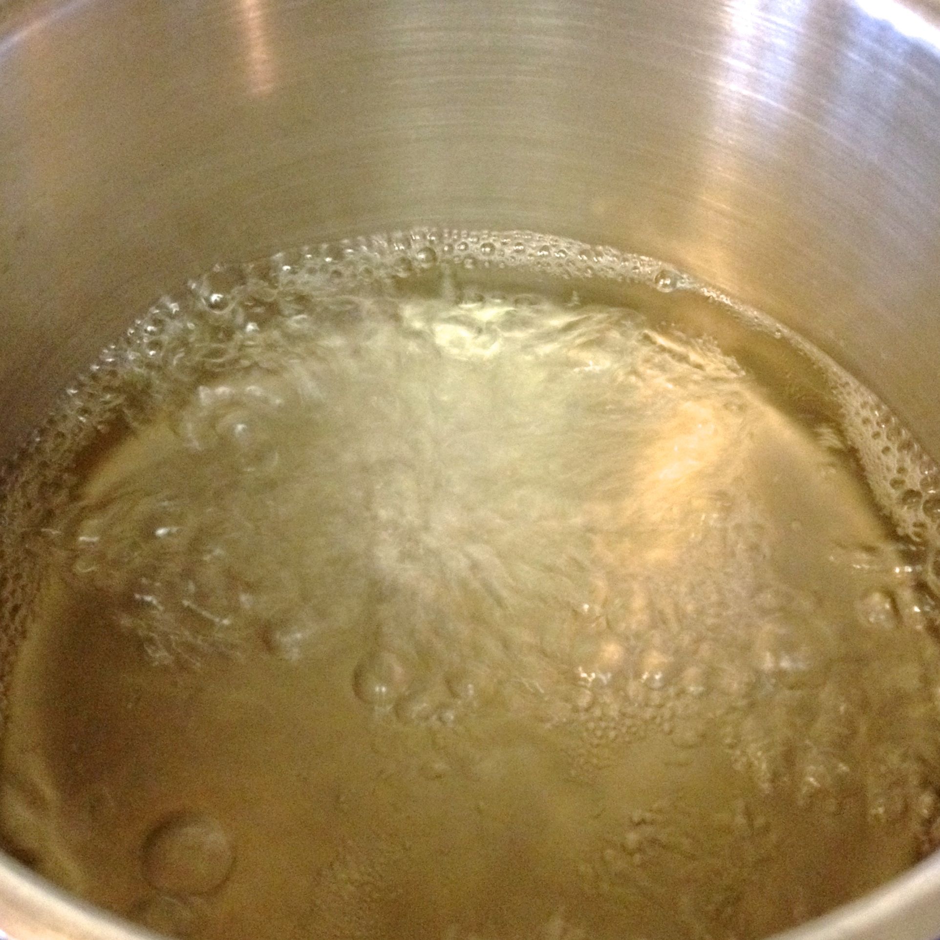 In a medium sized pot, heat the water, with the salt, to boiling.