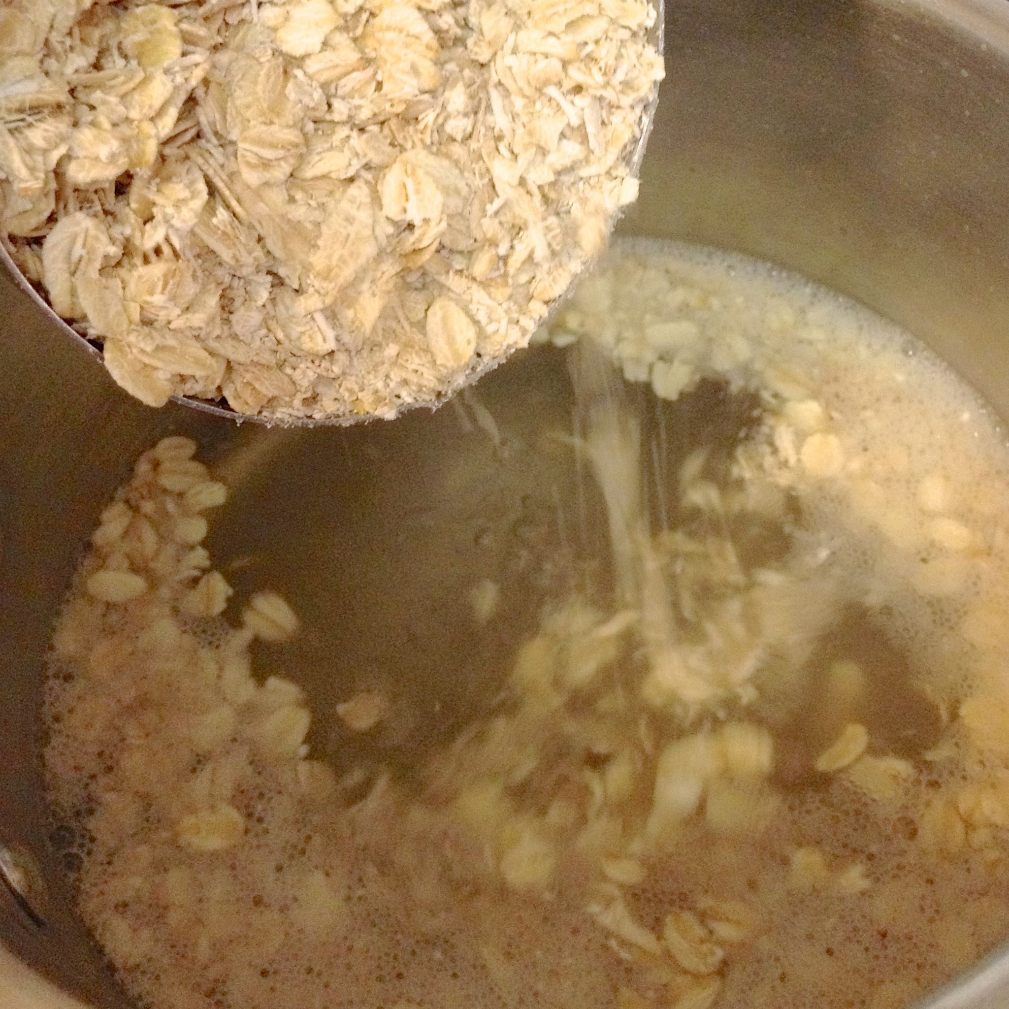 Add in the oats, stirring continuously, until it just returns to a boil.
