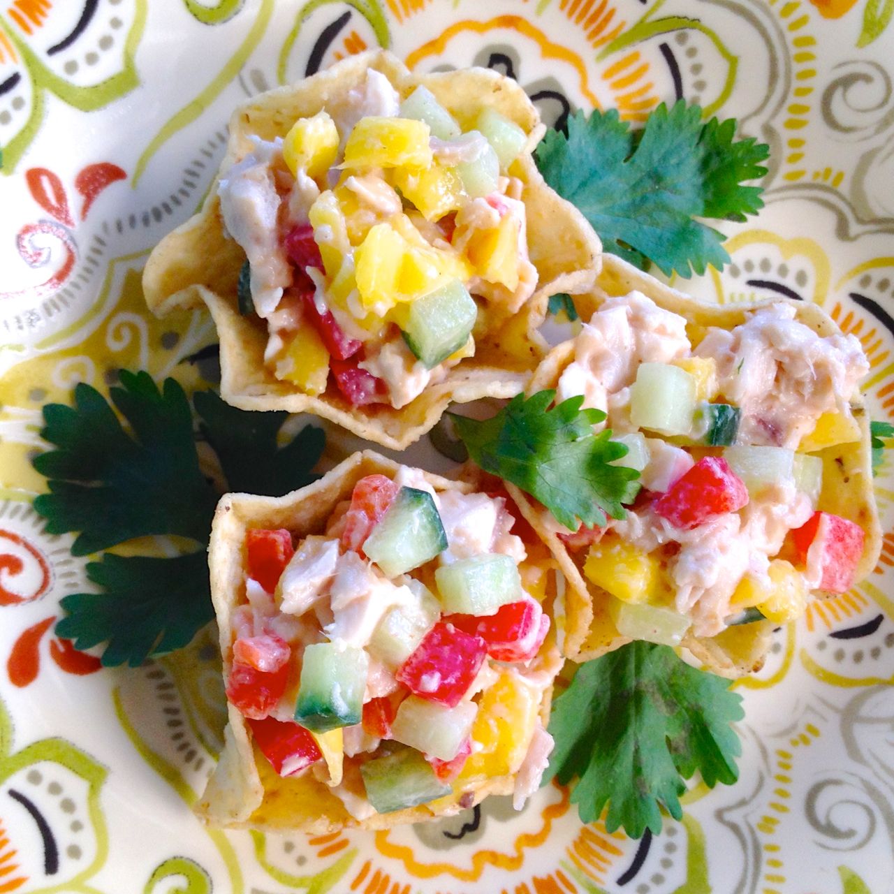 They can be served in tiny pastry cups, croustades, or as shown here, in tortilla chips.