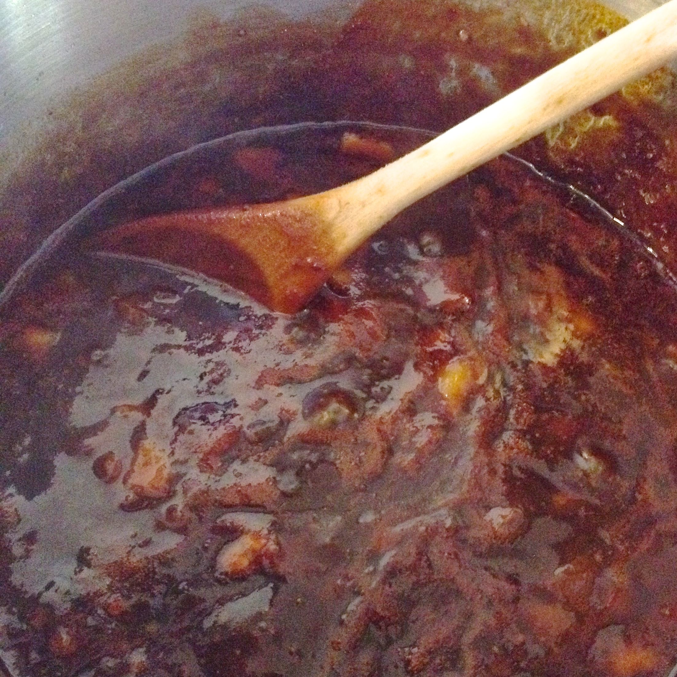 While the ribs are cooking, prepare the BBQ sauce. This can also be done ahead, up to a week, and reheated gently for ½ an hour before using.
