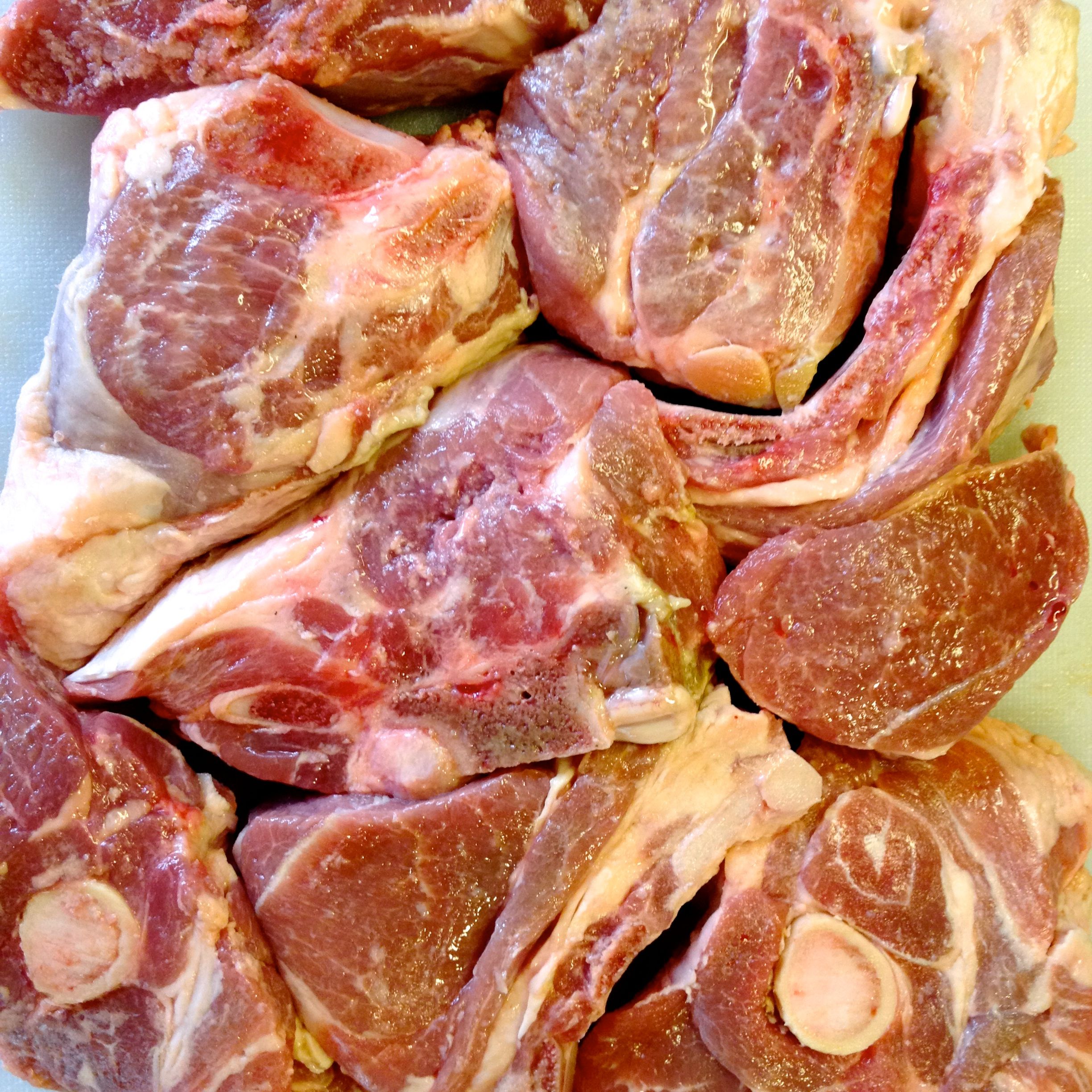 Cut each of the lamb chops in two, to give eight pieces in total.