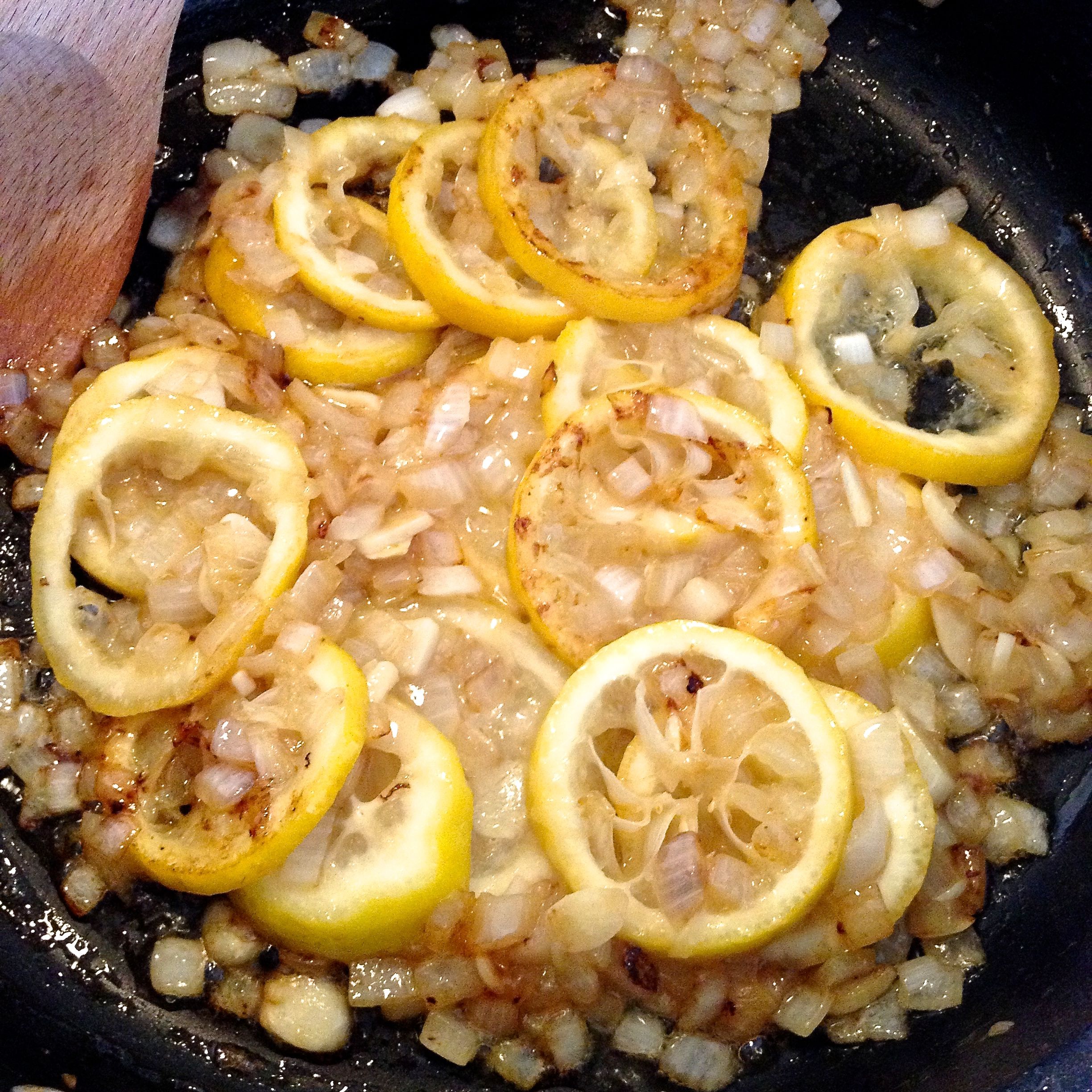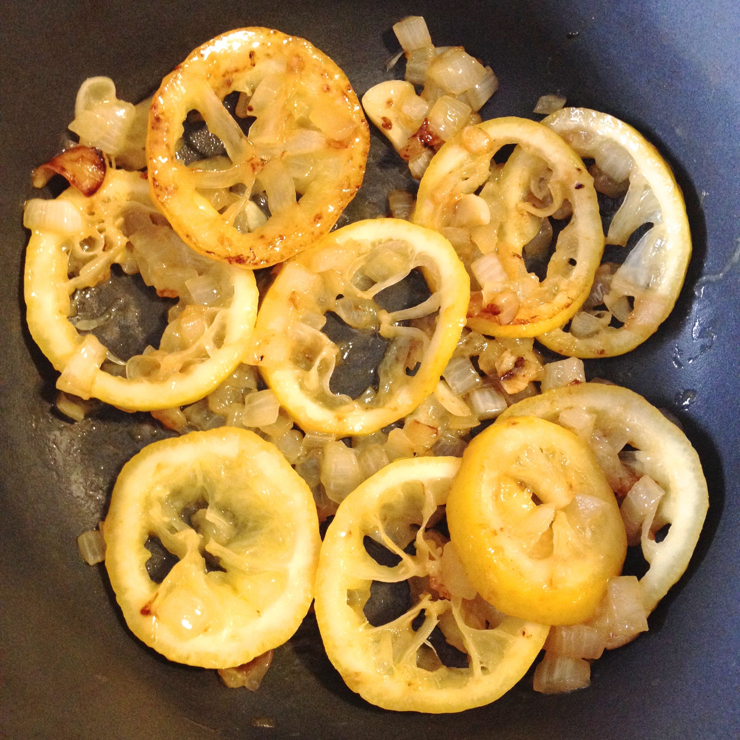 Stirring occasionally, sauté over medium heat, for about 8 minutes, until the lemons are slightly browned and starting to fall apart.