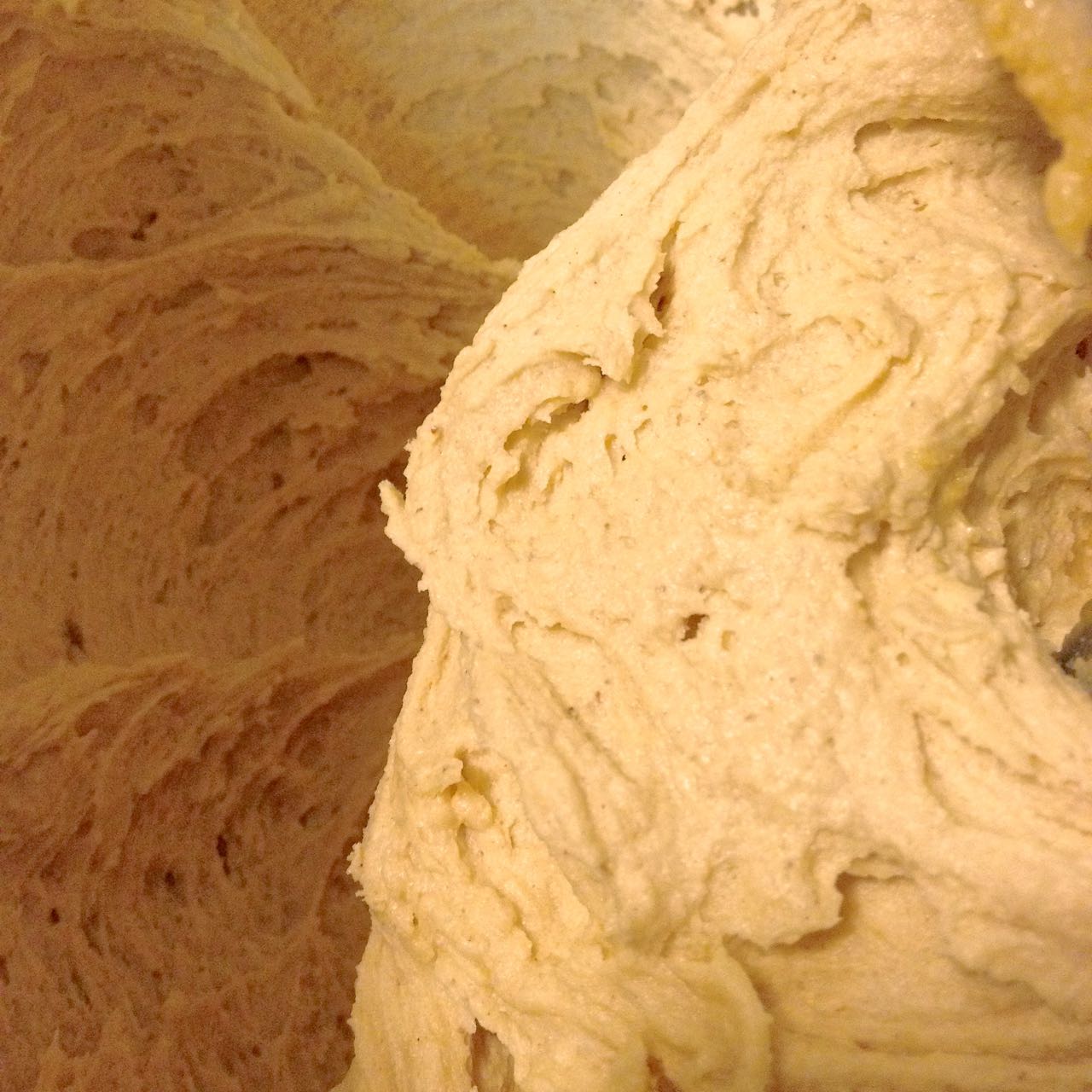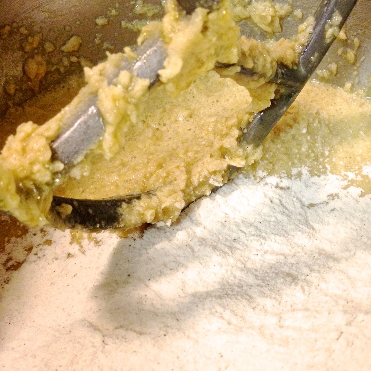 In a mixer bowl, cream together the butter, yellow sugar, and plain sugar. Beat on high for 4 minutes.
