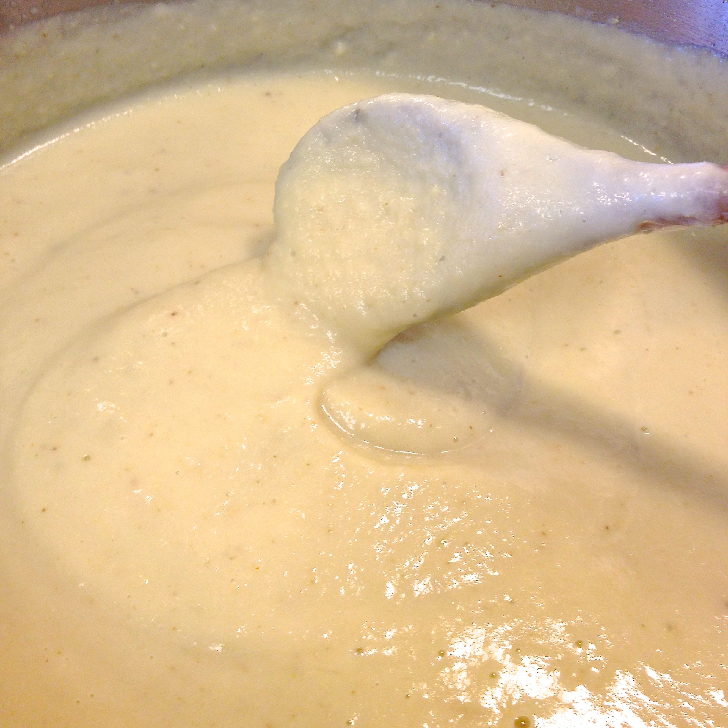 During a busy week in a restaurant kitchen, I was checking the walk-in cooler doing the order for the following week. I came across three big cauliflowers that for some reason hadn’t been used. As the weather was rainy and cool, I decided to roast all the cauliflower and make soup. It sold out the same day. So here it is, simple, nutritious, with the depth of flavour that roasting gives. Enjoy!