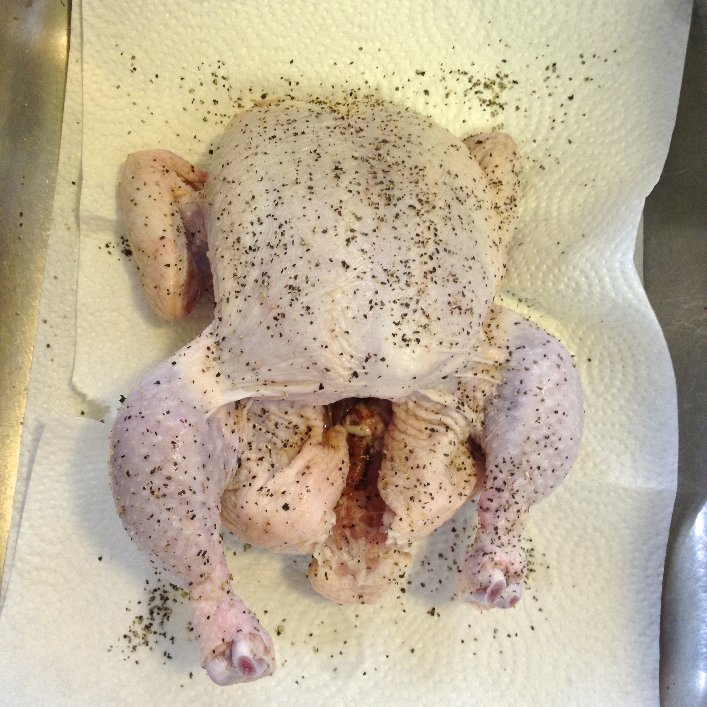 Note: using a kitchen sink for preparing chicken is super easy way of keeping your counter clean of raw chicken. Simply discard the paper towel when you’re done, and wash the sink.