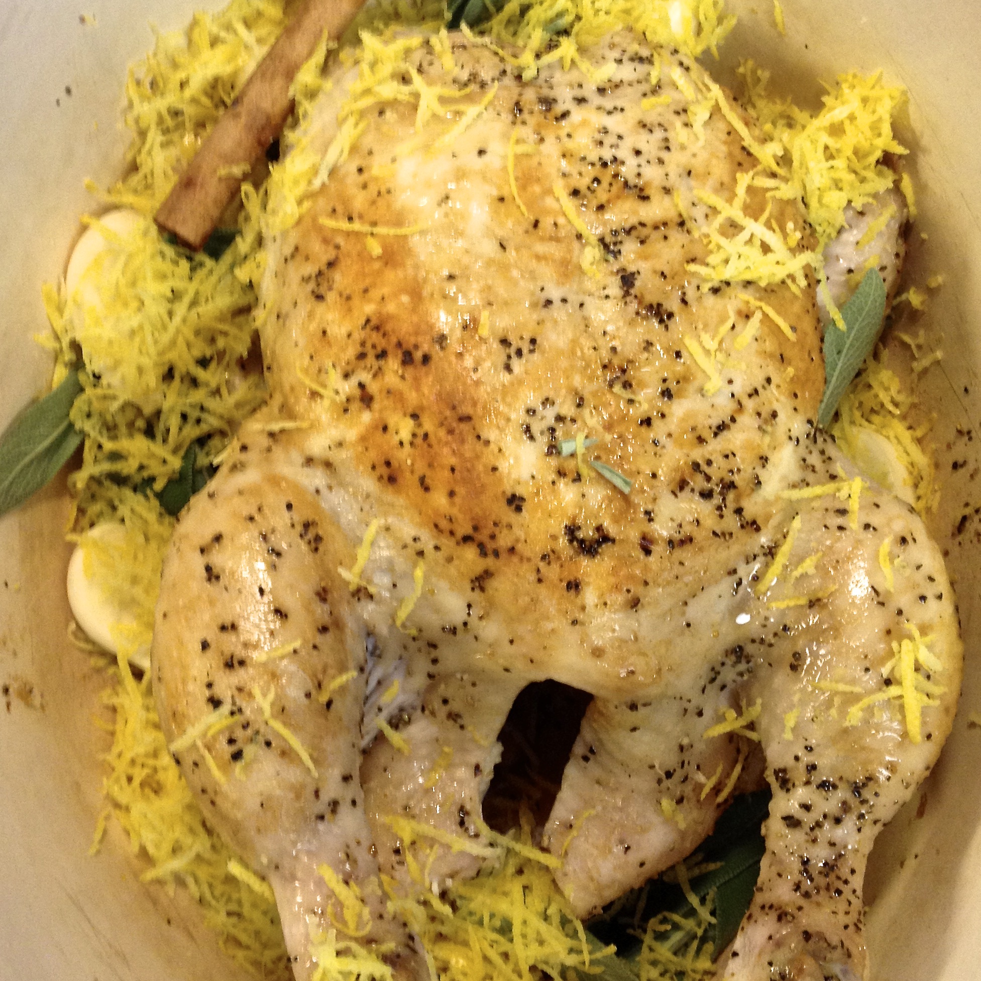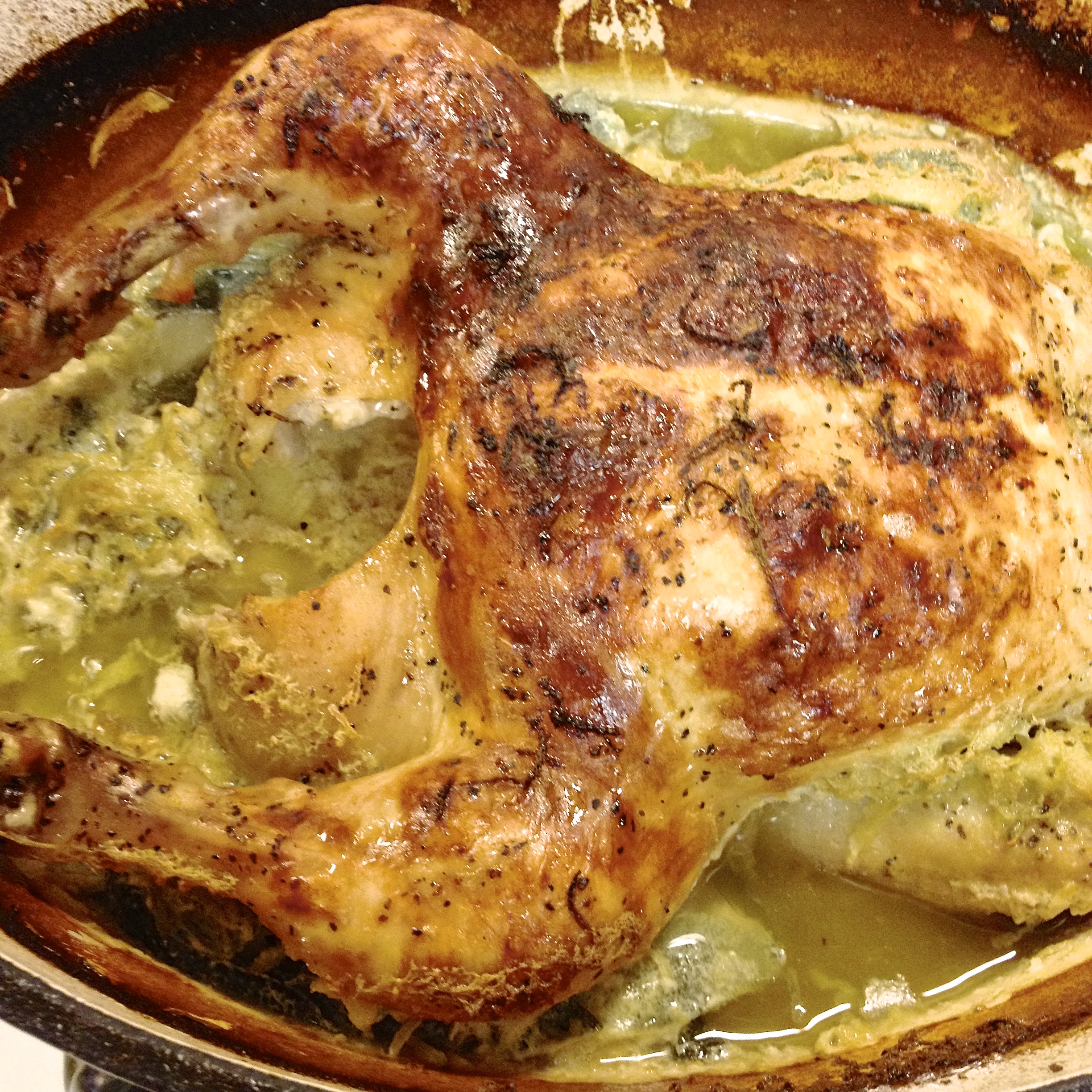 Jamie Oliver’s chicken cooked with milk, sage & lemon, seemed to be calling out to me. Whether it was in the form of a random review, or best 10 lists, finally I decided to try it. The simplicity of Jamie Oliver’s recipes always appeal to me, as he has an amazing knack for taking the best and freshest and creating dishes that become part of our everyday cooking. The reviews for this chicken are pretty constant; many people commenting that it is the “best chicken ever”. That’s a pretty good compliment. Well, I tend to agree. I’ve made it a few times now, and each time I get exactly the same results. The chicken cooked beautifully right through to the bone, with subtle flavours, and a very “more” quality. We are given the comfort of a beautifully roasted chicken, with melt in your mouth tenderness.