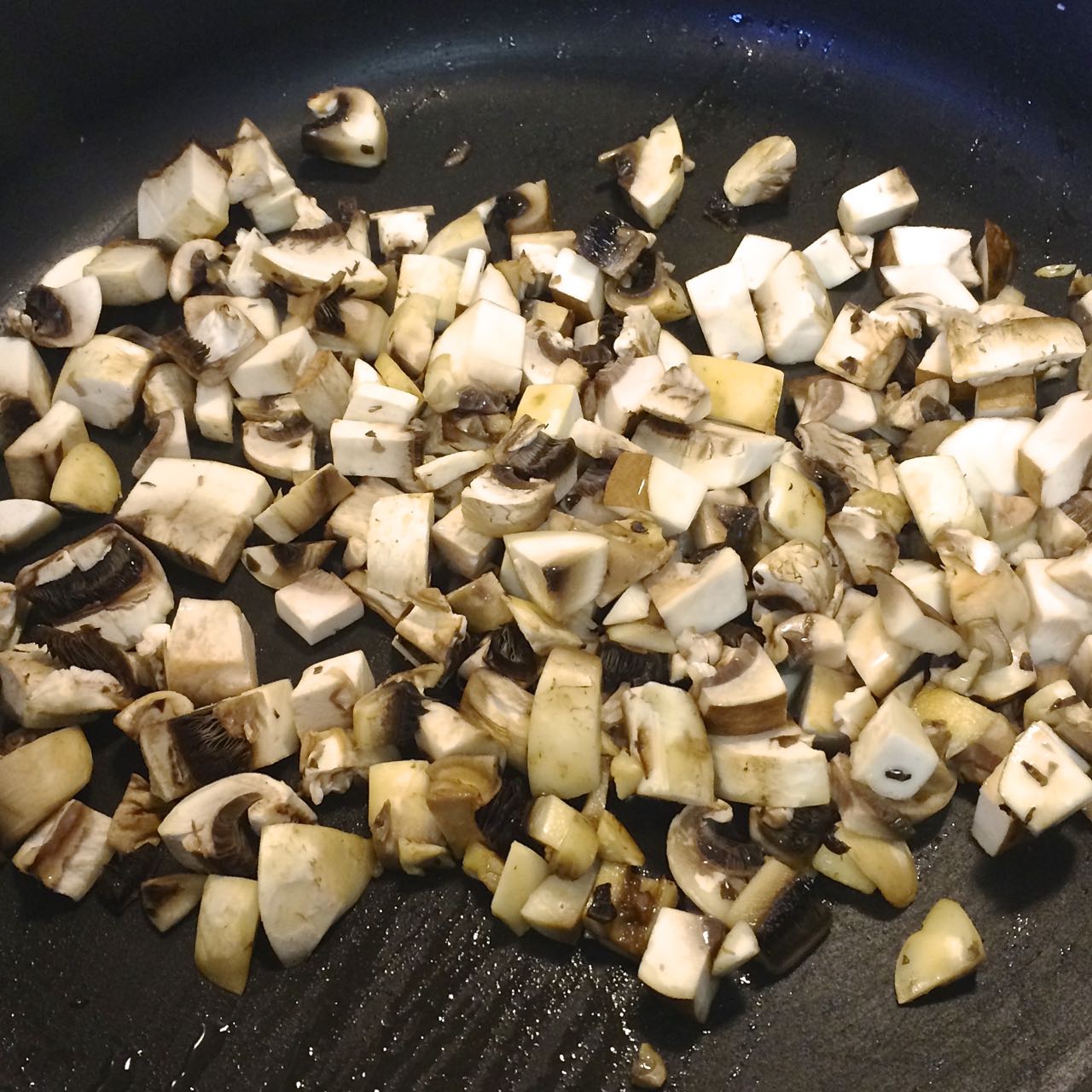 Add in the chopped mushrooms, and cook stirring occasionally, until they’re just starting to change colour.