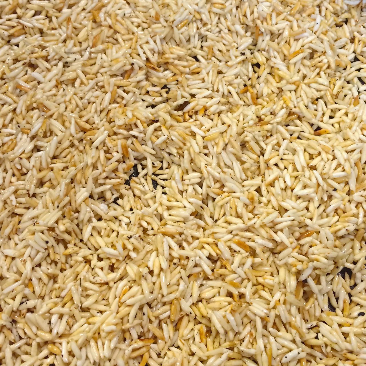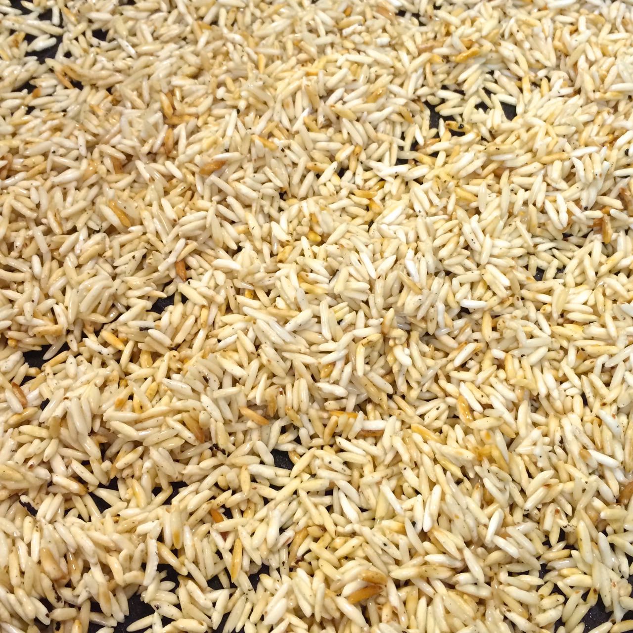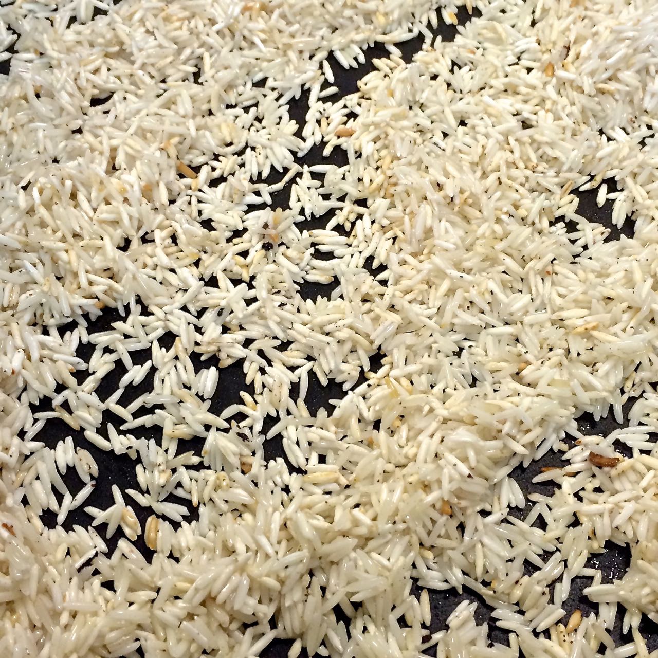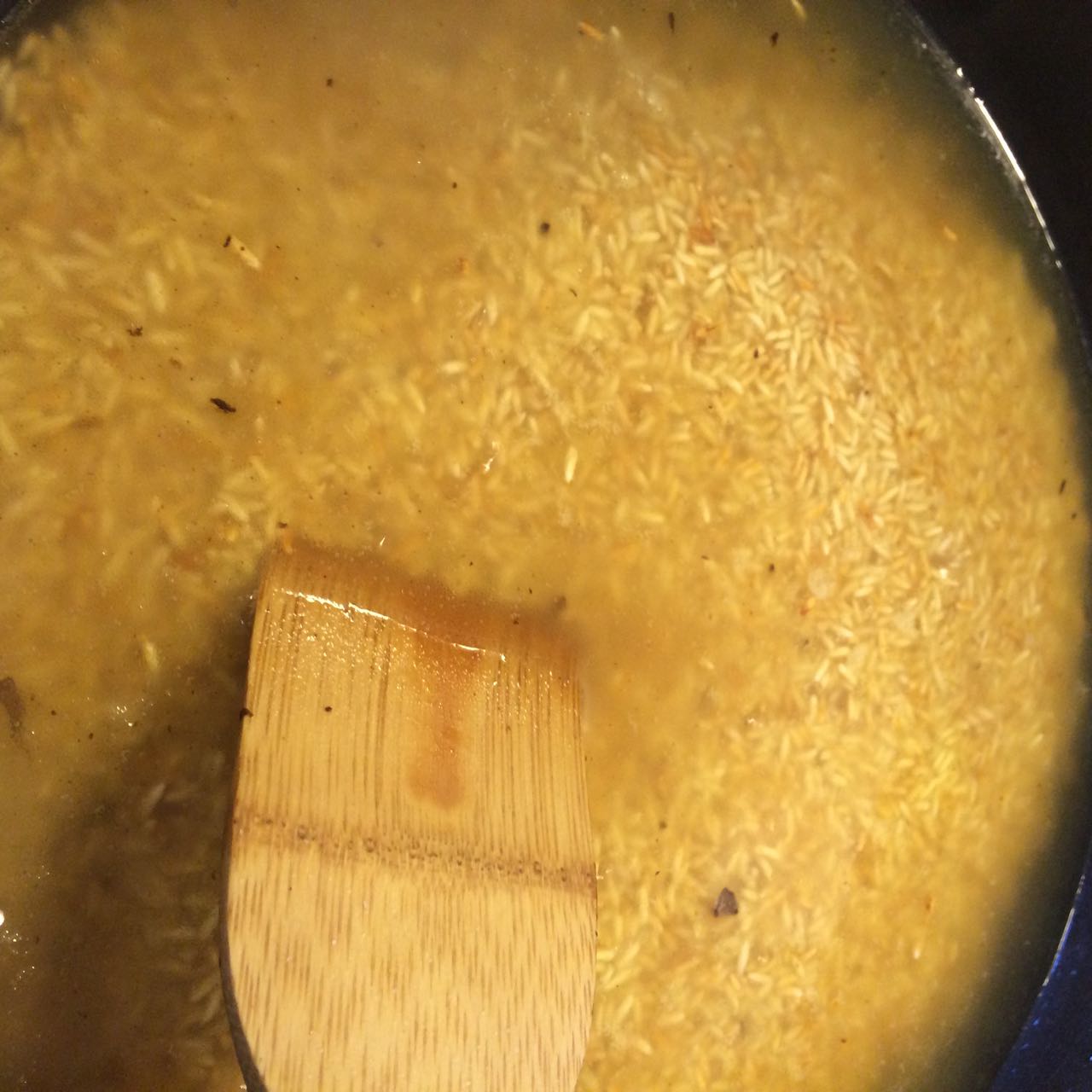Stir occasionally as the rice becomes golden. This takes 6-7 minutes. If it’s browning too quickly, reduce the heat. You don’t want to scorch the rice.