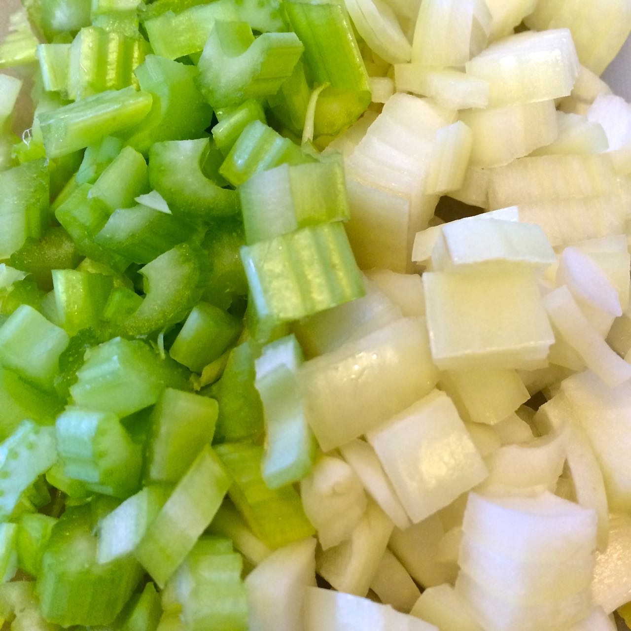 Add in a minced hot pepper (seeds removed), with the onion and celery.