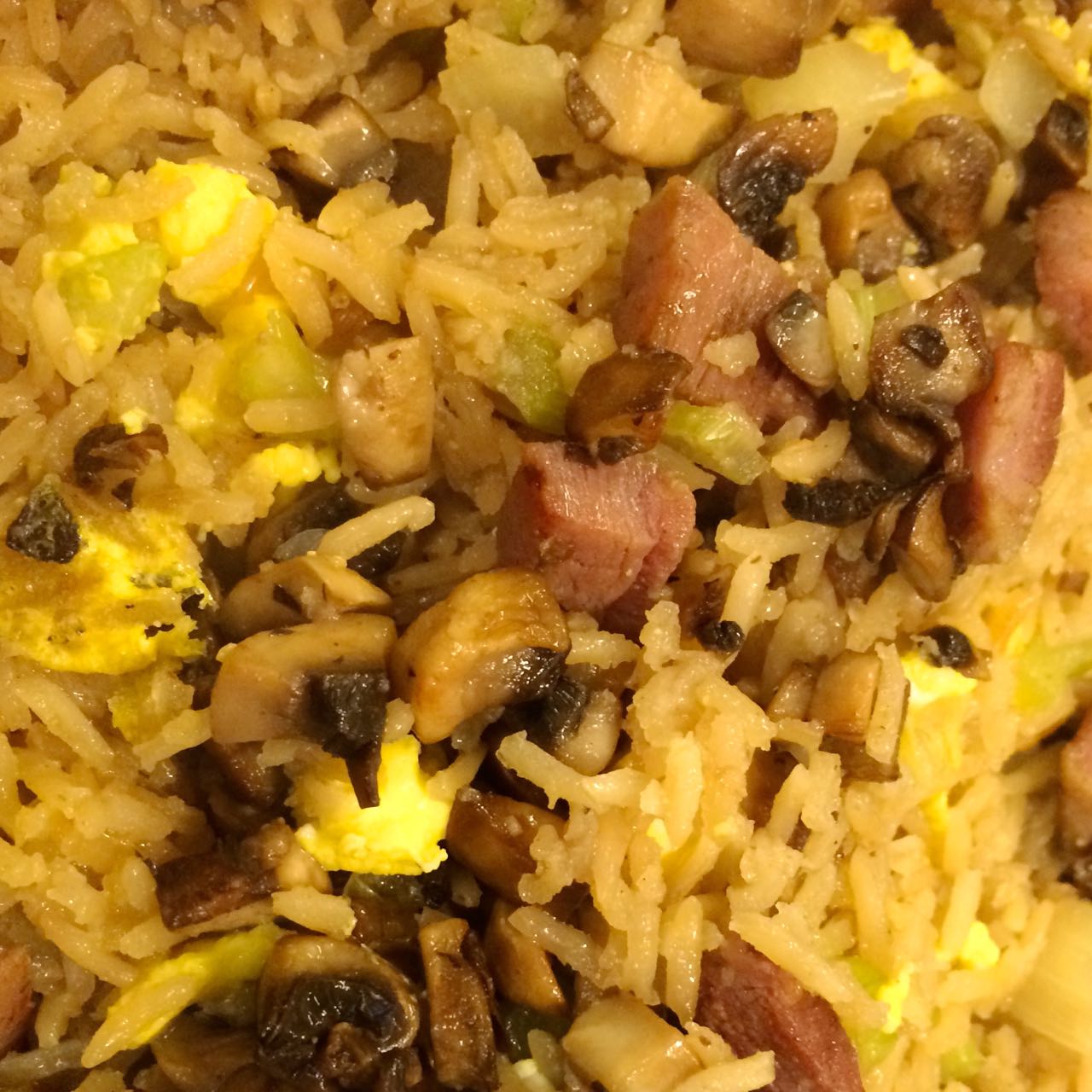 Frying the rice before cooking it (instead of frying leftover rice) gives it a nuttier flavour. The recipe still uses small amounts of vegetable, meats, and egg to make it a complete meal. Be creative with this, as it is a very simple meal, using what is at hand. It can easily be fully vegetarian, or just use the egg if you like.