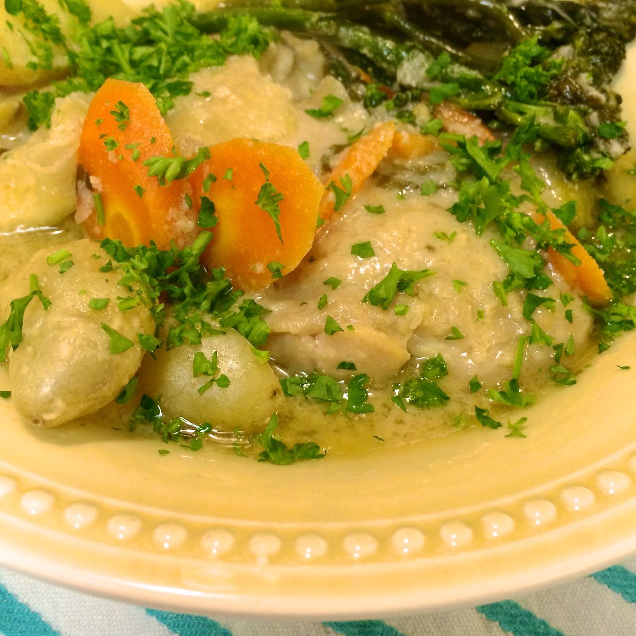 There is something incredibly satisfying about stews, regardless of their country of origin. Pieces of vegetables nestled in a rich sauce, sometimes with meat, sometimes without. Once I discovered the wonderful aspects of Thai red & green curry pastes, I started playing with different versions of stews using coconut milk as a base. I remember a surprise visit of a large family, and making enough vegetable stew to feed us all easily, using a mixture of just the vegetables I had on hand, along with coconut milk and some curry paste. We served it over mounds of rice in large bowls while we got caught up on each other’s lives.