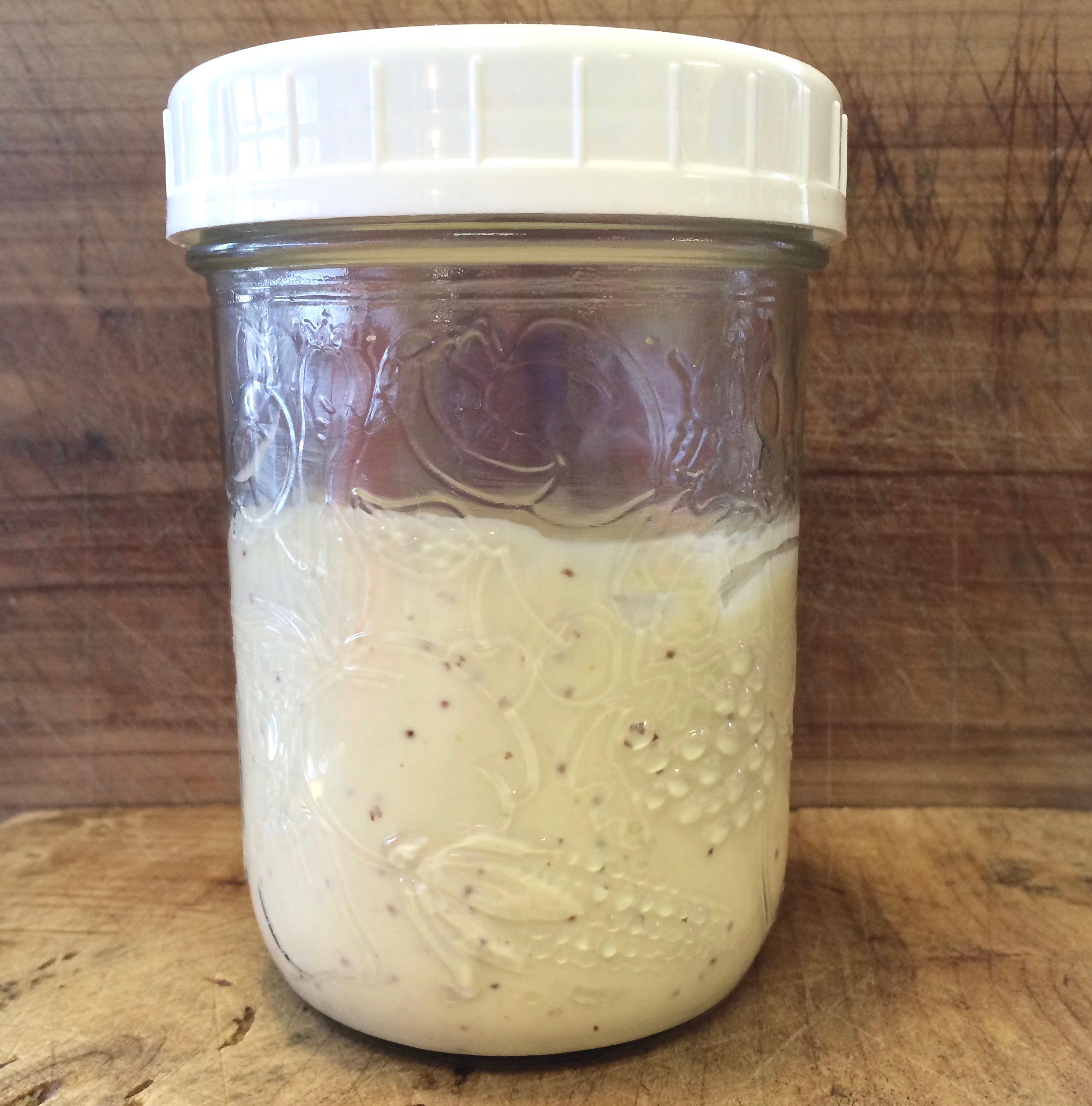 The ubiquitous mayonnaise is used in so many ways, from fresh to grilling to oven baking. It is one of the simplest emulsions, using five ingredients. Taught to make it by whisking vigorously, I was more than happy to start using my immersion blender to do the work for me. This is really incredibly easy, and will make you question why you buy mayonnaise. I make it in pint jars, so no bowl or cup to clean out, just a measuring cup to put in the top of the dishwasher along with the working end of the blender. It is so nice knowing exactly what is in this oft-used spread.