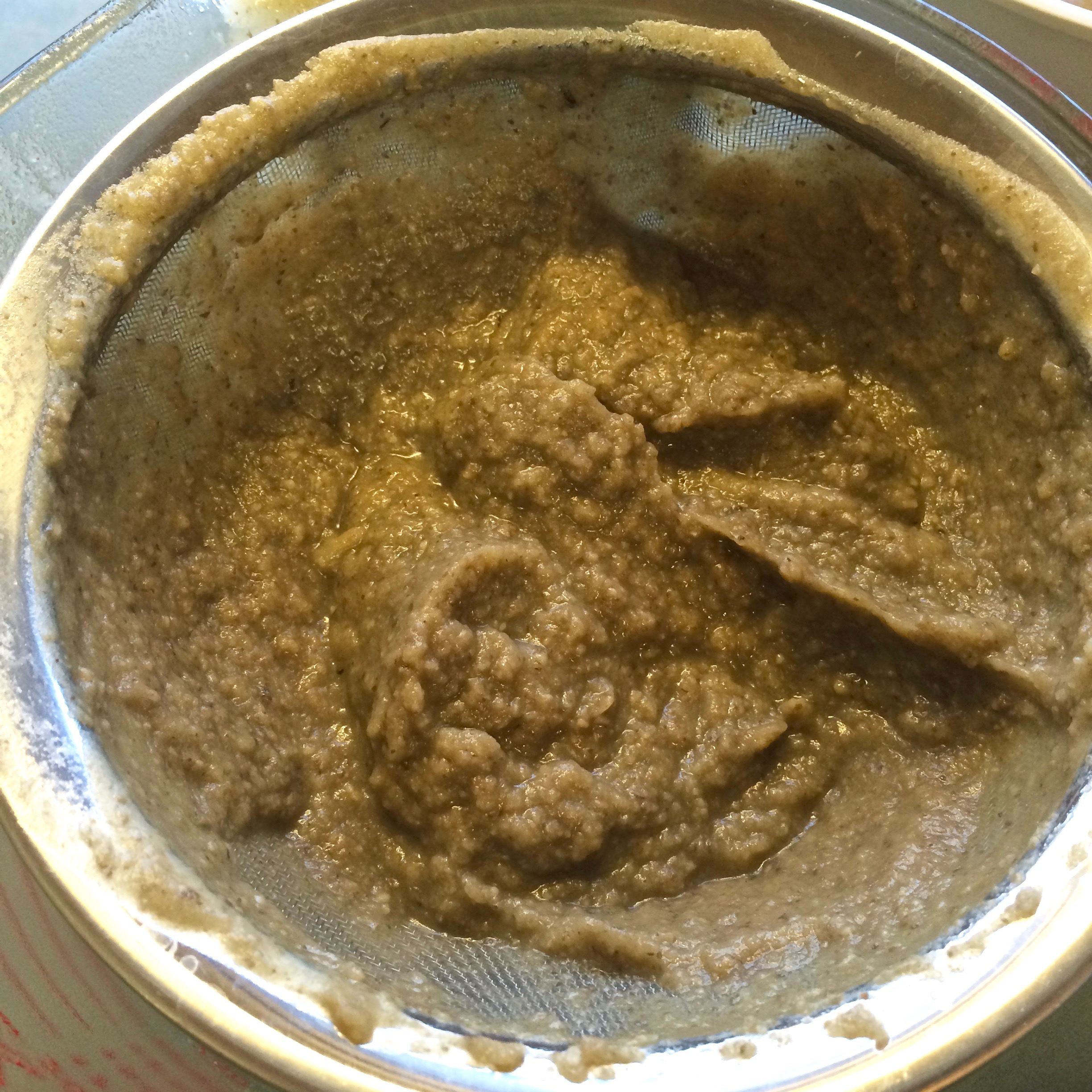 Press through a fine sieve back into the soup pot, until any small chunks have been reduced to fine particles, and any hard bits have been removed.