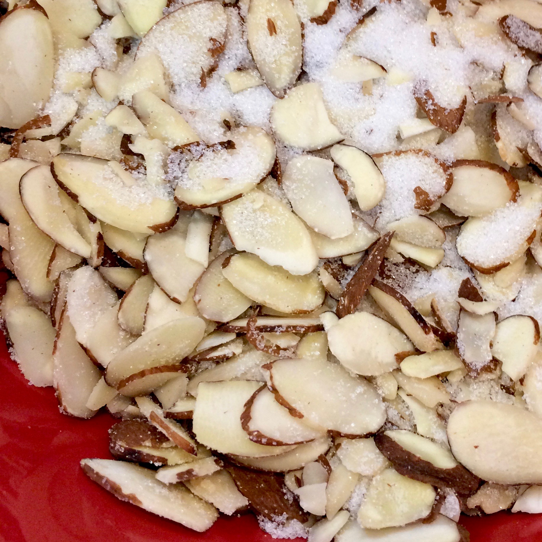 In a small bowl, mix the sliced almonds and sugar. Reserve for topping.